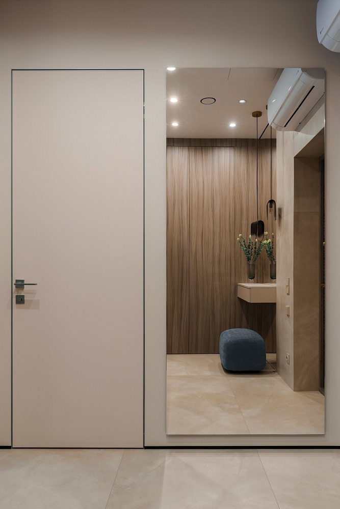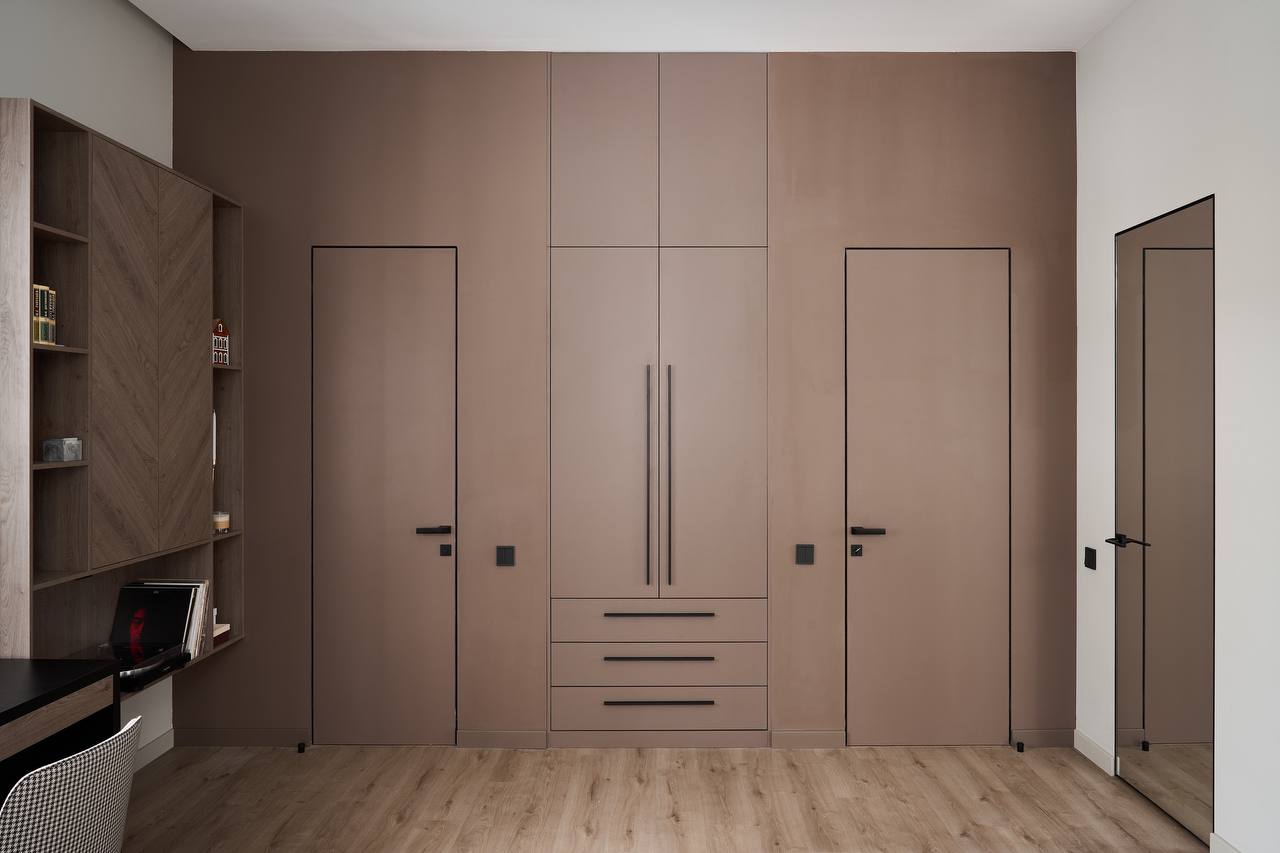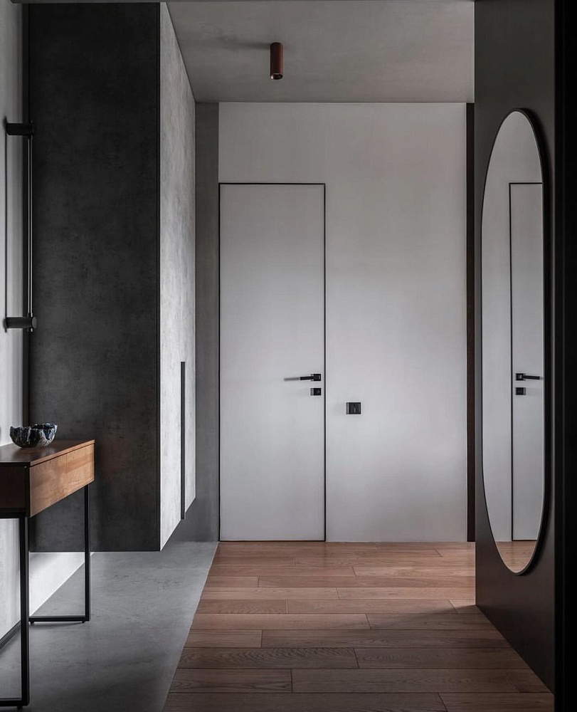 - когда в проекте много дверей, полезно часть из них сделать "невидимыми" - это делает интерьер визуально более "легким", чистым, лаконичным