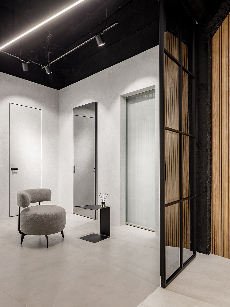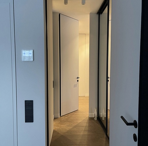 «Наши концепции в дизайне всегда опираются на минимализм и рациональность. Чистые линии и лаконичные формы всегда выстраивают строгую логику в оформлении интерьеров. В своих проектах мы почти всегда используем двери со скрытым монтажом, в сочетании с шпонированными панелями, с зеркалами или просто под покраску они помогают нам организовать ту самую притягательность минимализма.»Видео о скрытых дверях